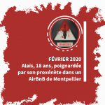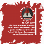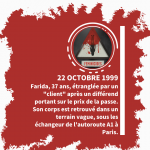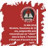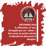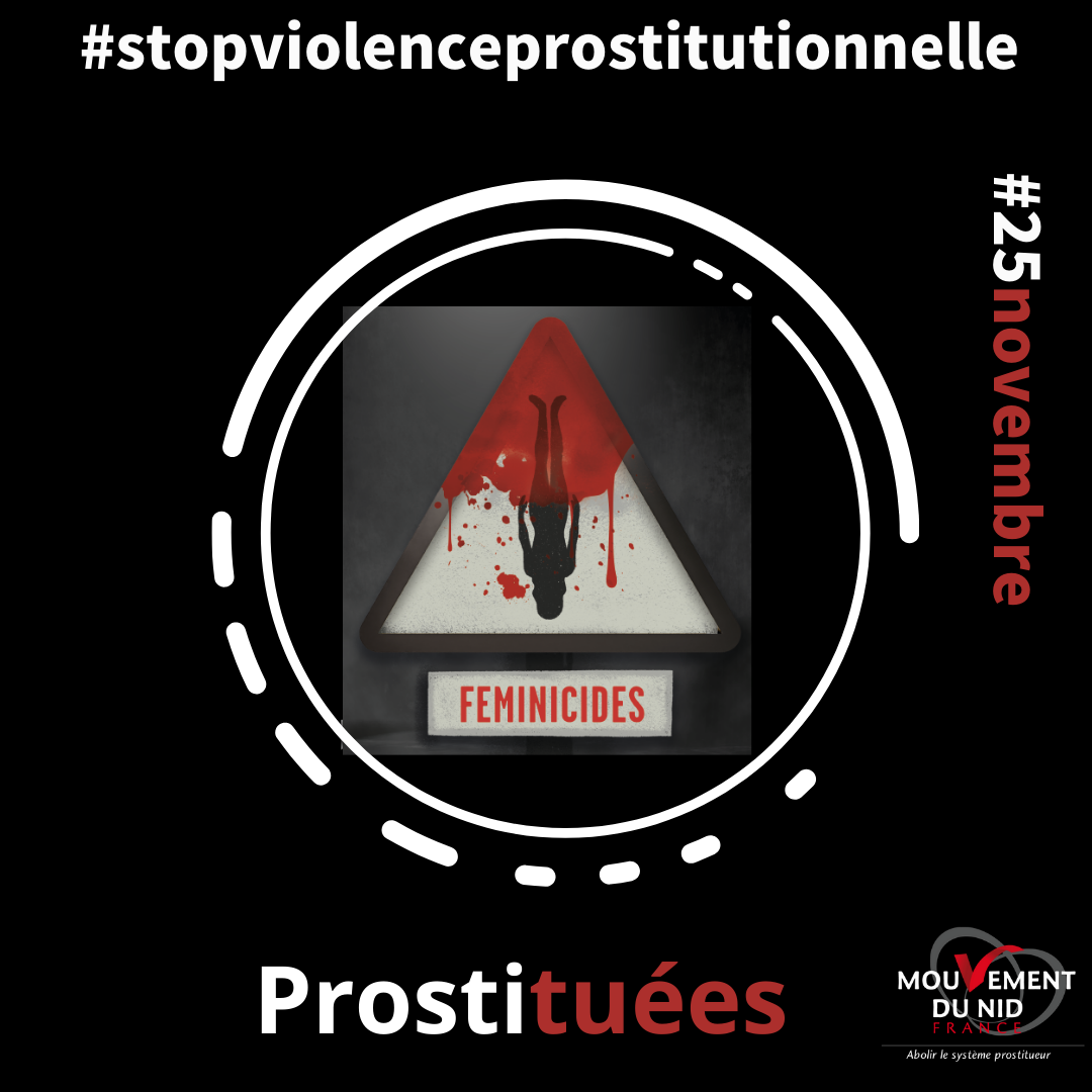• Du 4 au 25 novembre, nous publions des visuels sur les réseaux sociaux alertant sur les féminicides commis dans la prostitution, en premier lieu par des « clients », depuis 20 ans. Ces visuels montrent clairement que les violences prostitutionnelles sont le fait des « clients » et n’ont rien à voir avec la loi de 2016.